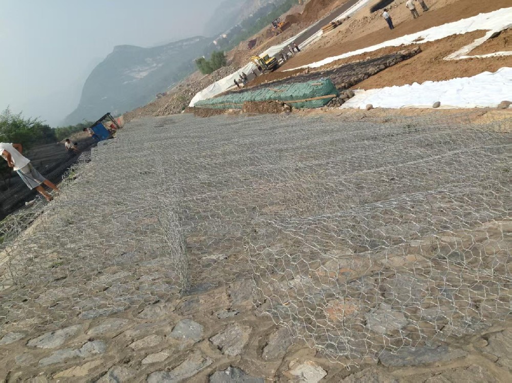 石笼网是使填石固定就位的铁丝或聚合物丝网格式制作物。铁丝笼是由铁丝编织的网格或焊接而成的结构物。这两种结构可以是电镀的,编织的铁丝箱可另外涂上PVC。用抗风化坚硬石块作填料,它在石箱或石笼沉排中不会因磨蚀而很快破碎。装有不同类型的块石的石笼有不同的特性。多角的块石能相互很好地联锁在一起,用其填装的石笼不易变形。在园林景观工程中,公路护坡、堤坝护岸以及山体陡坡复绿一直是工程技术人员头疼的难题。多年来,他们一直在探索一种工艺,既能满足山体、岸滩稳定的防护要求,又能达到绿化环境的效果,同时还经济便捷。渐渐的,这种工艺开始浮出水面,它就是生态石笼网应用工艺。生态石笼网应用工艺是用高强度镀锌钢丝编织成不同规格的矩形笼子,笼子内充填石头的结构。这种结构应用到岸坡防护后,在人为和自然因素的双重作用下,石块之间的缝隙不断被泥土充填。植物种子逐渐在石块之间的泥土中生根发芽,茁壮生长,根系牢牢固定石块和泥土。如此即可以对边坡实现防护和绿化的目的,改善生态、保持水土的效果也十分显著。