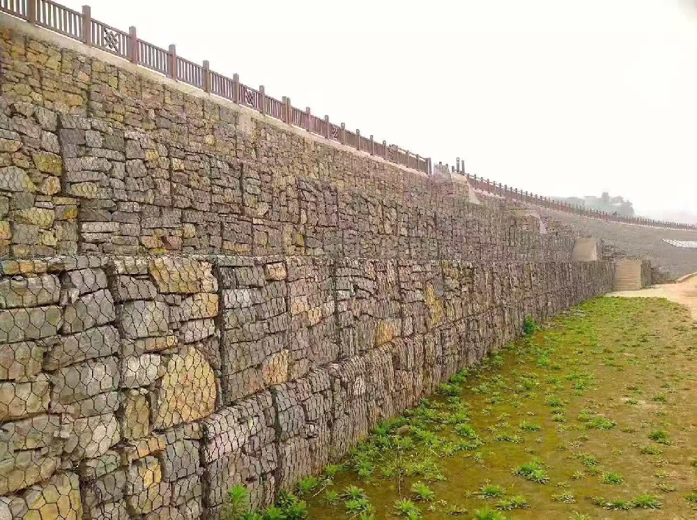 石笼网是使填石固定就位的铁丝或聚合物丝网格式制作物。铁丝笼是由铁丝编织的网格或焊接而成的结构物。这两种结构可以是电镀的,编织的铁丝箱可另外涂上PVC。用抗风化坚硬石块作填料,它在石箱或石笼沉排中不会因磨蚀而很快破碎。装有不同类型的块石的石笼有不同的特性。多角的块石能相互很好地联锁在一起,用其填装的石笼不易变形。在园林景观工程中,公路护坡、堤坝护岸以及山体陡坡复绿一直是工程技术人员头疼的难题。多年来,他们一直在探索一种工艺,既能满足山体、岸滩稳定的防护要求,又能达到绿化环境的效果,同时还经济便捷。渐渐的,这种工艺开始浮出水面,它就是生态石笼网应用工艺。生态石笼网应用工艺是用高强度镀锌钢丝编织成不同规格的矩形笼子,笼子内充填石头的结构。这种结构应用到岸坡防护后,在人为和自然因素的双重作用下,石块之间的缝隙不断被泥土充填。植物种子逐渐在石块之间的泥土中生根发芽,茁壮生长,根系牢牢固定石块和泥土。如此即可以对边坡实现防护和绿化的目的,改善生态、保持水土的效果也十分显著。